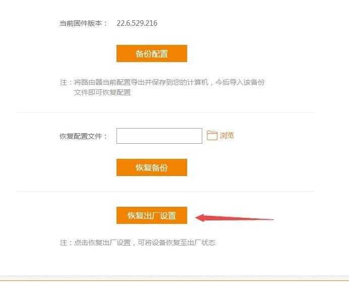 通过RST按钮恢复出厂设置 路由器通电情况下,持续按住机身上的RST键(有两种类型:RESET按钮或RESET小孔) 8秒后放开。等待约1分钟即可。